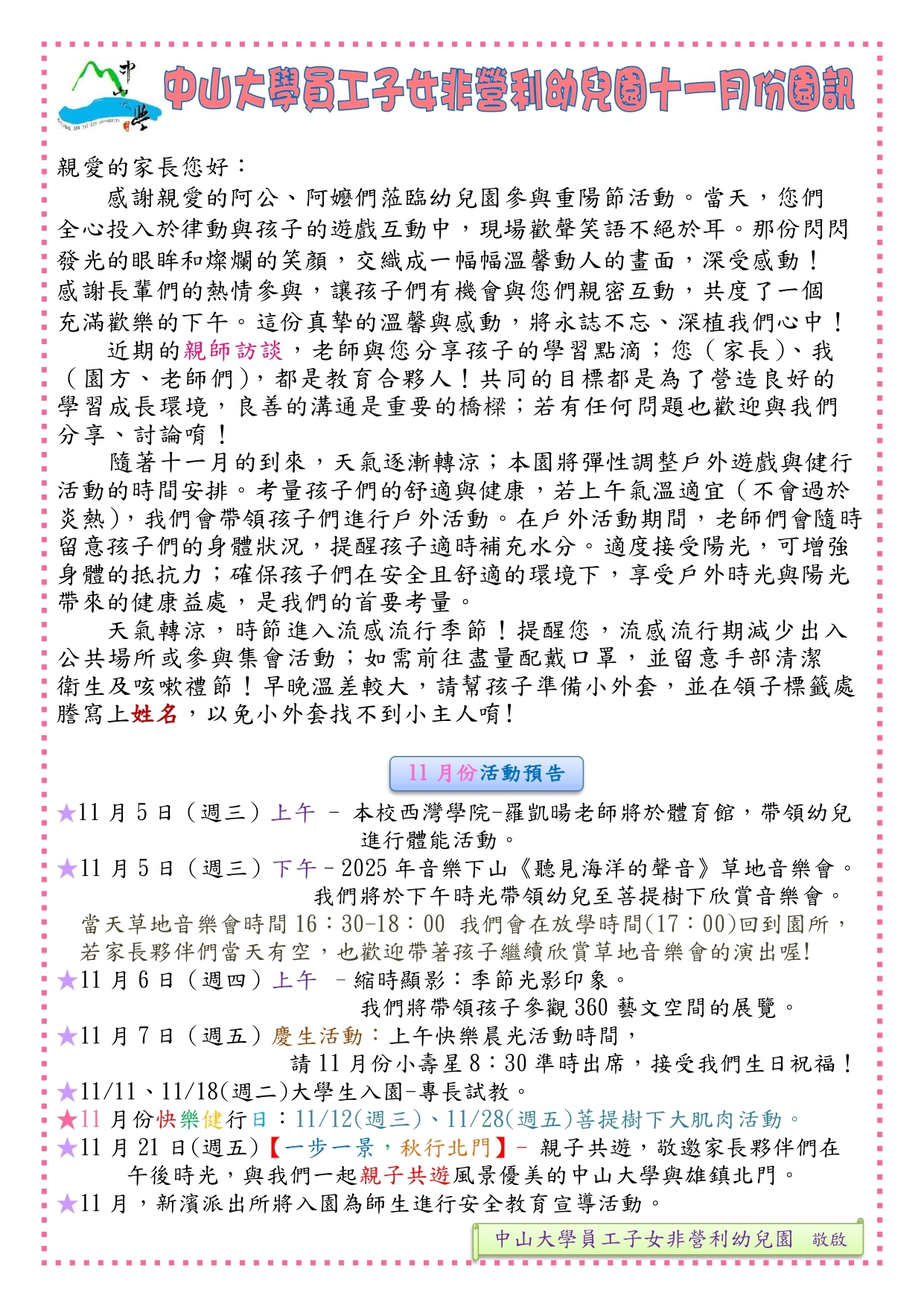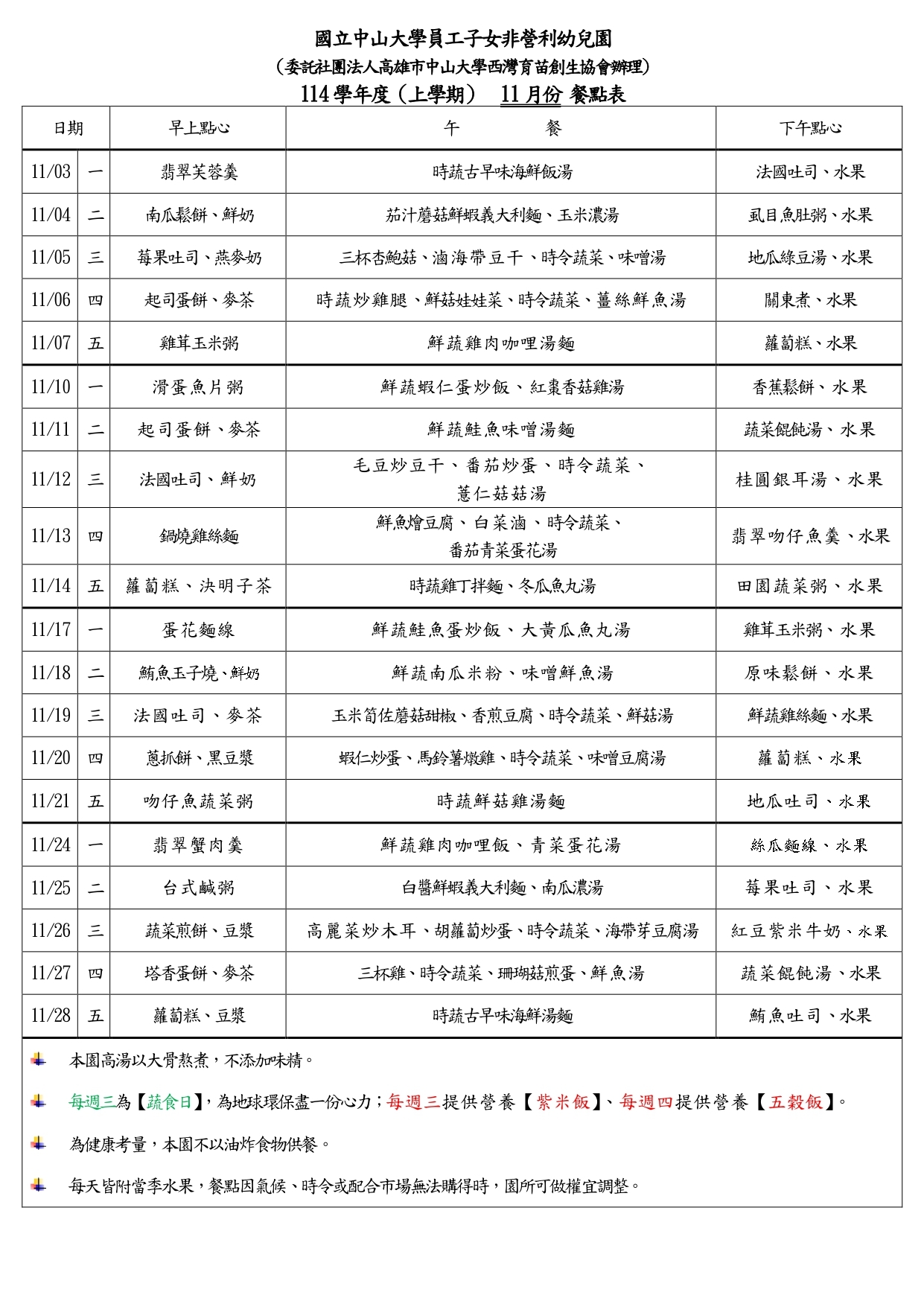 114學年度11月園訊、餐點表