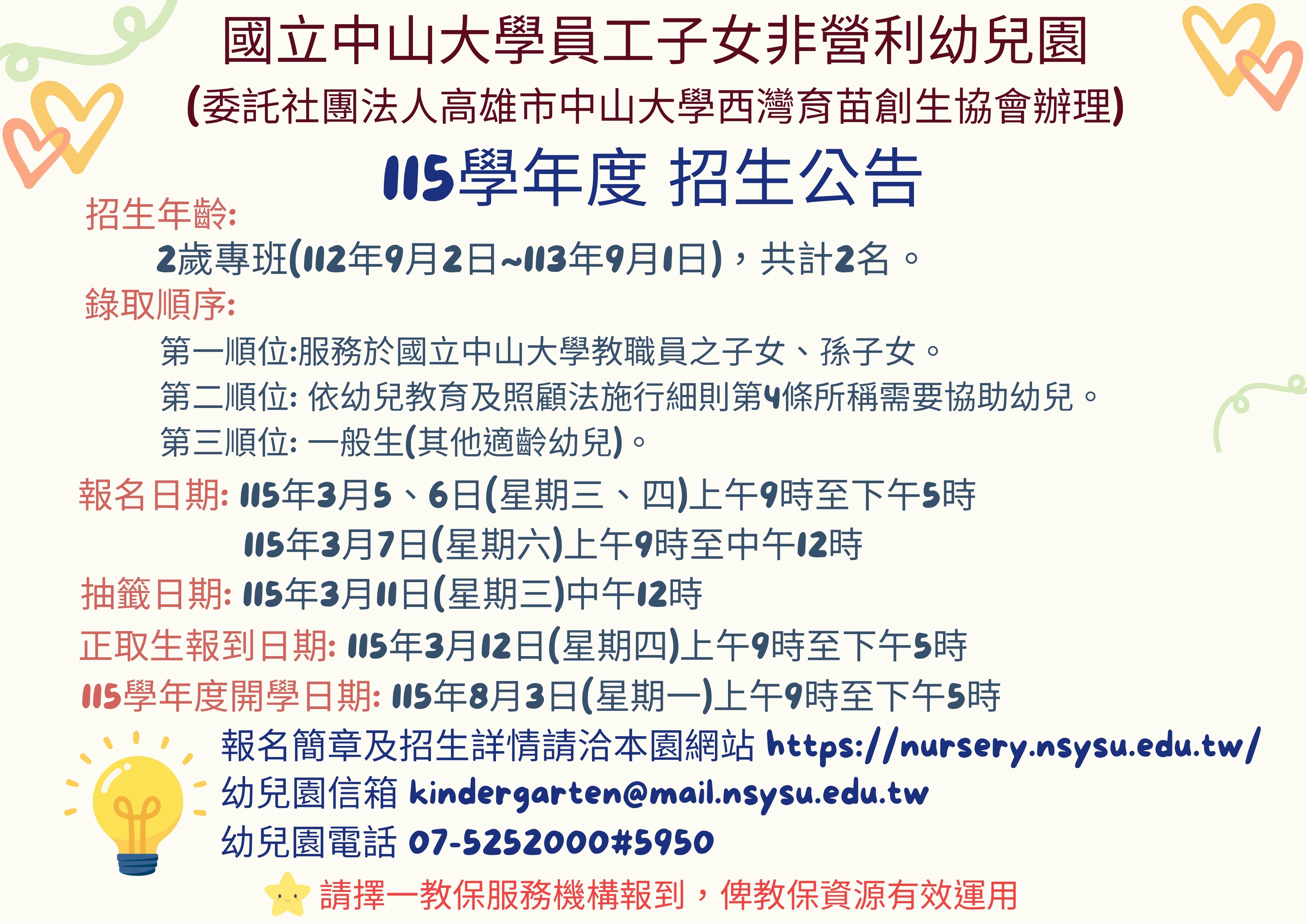 國立中山大學員工子女非營利幼兒園(委託社團法人高雄市中山大學西灣育苗創生協會辦理)