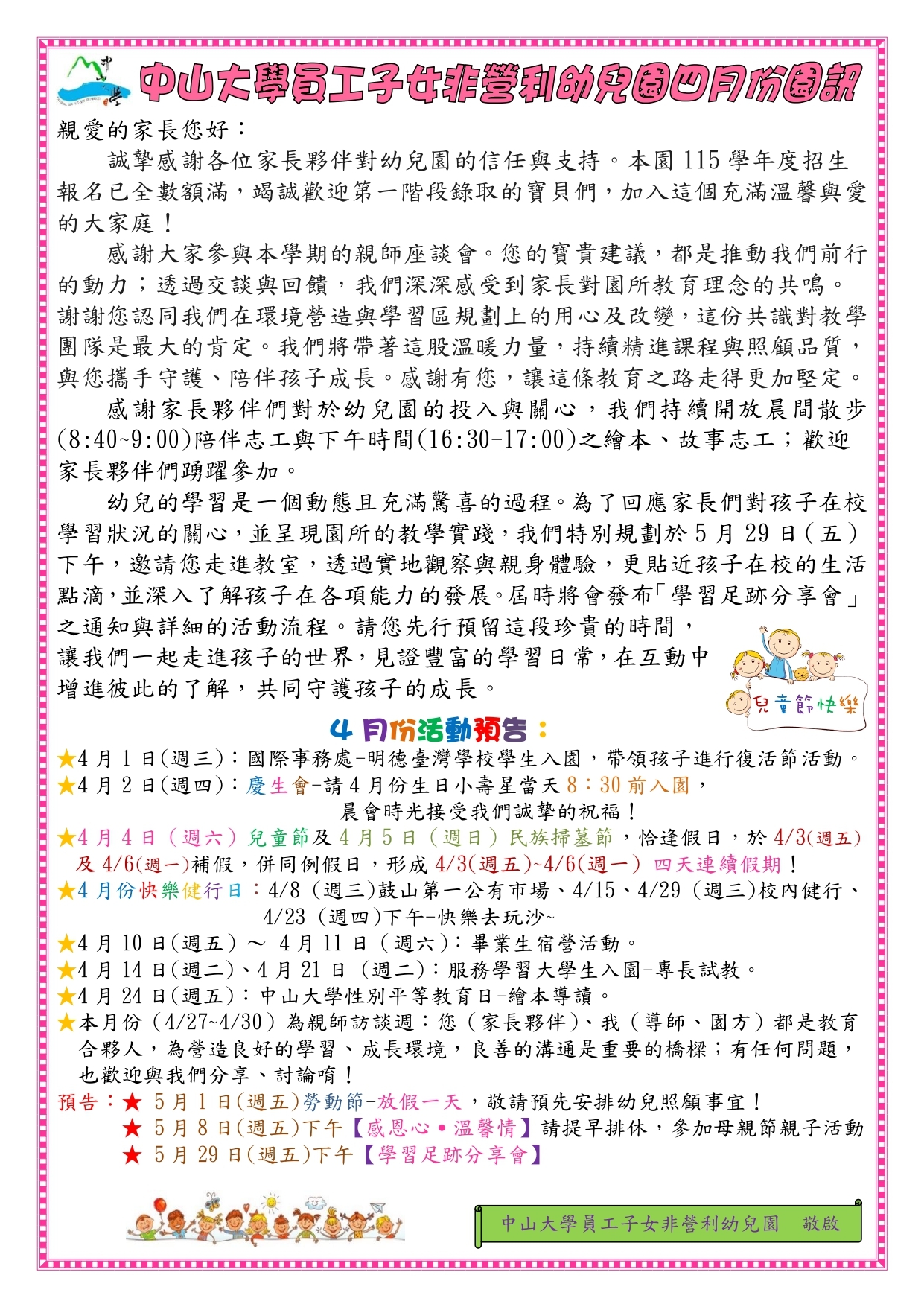114學年度4月園訊、餐點表