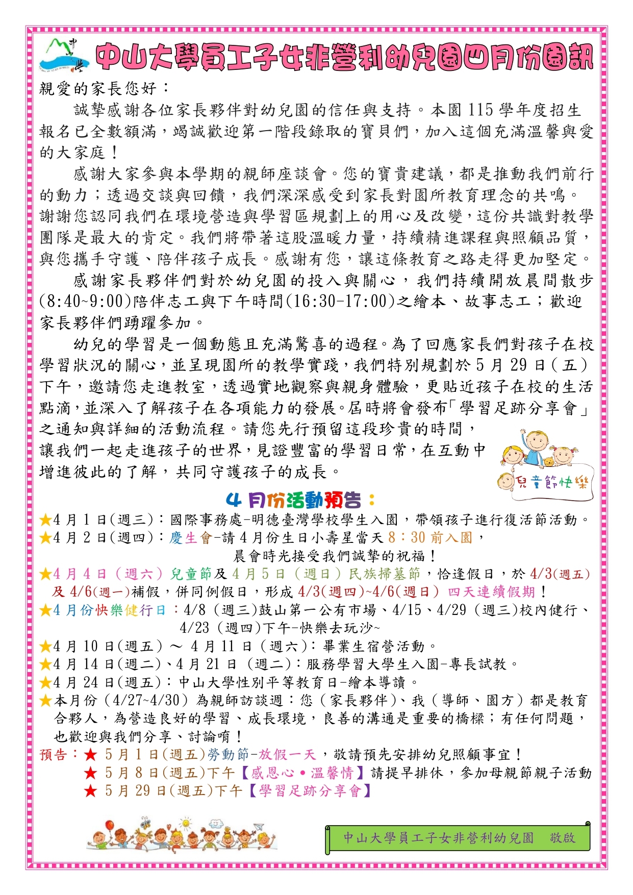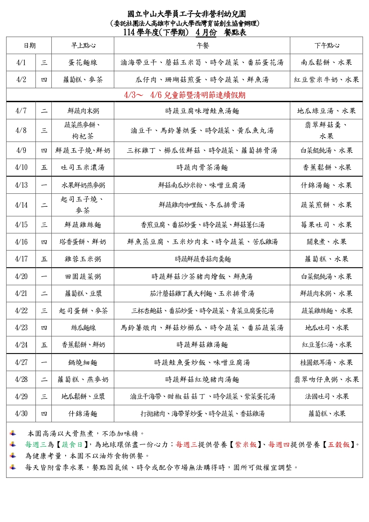 國立中山大學員工子女非營利幼兒園(委託社團法人高雄市中山大學西灣育苗創生協會辦理)
