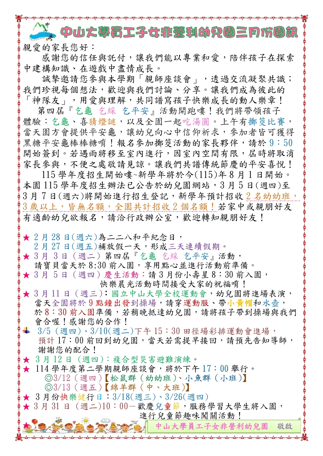 114學年度3月園訊、餐點表